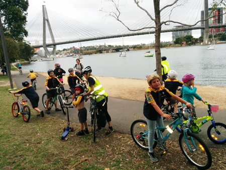 An evening cycle along the Glebe Foreshore Parkland had cubs out on their scooters and bicycles.